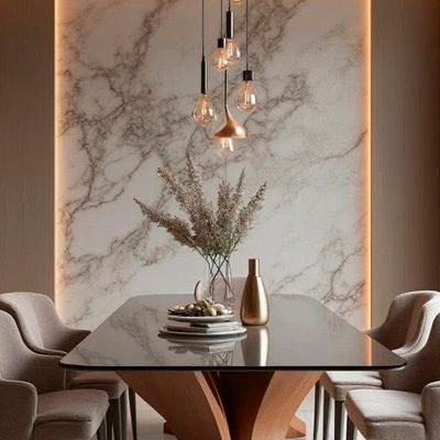Estos paneles tienen apariencia de mármol, piedra natural, texturizadas tipo madera, refleja espejo o metálicos. Resistente al agua y fácil mantenimiento.