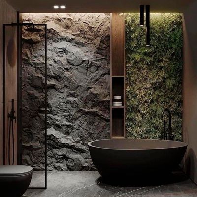 Tienen apariencia de piedra natural, concreto o texturizados. Son más ligeras que una piedra natural o concreto y por su flexibilidad se adapta a superficies irregulares o curvas sin necesidad de romper las paredes. Se instala rápidamente ahorrando tiempo y costo de mano de obra.